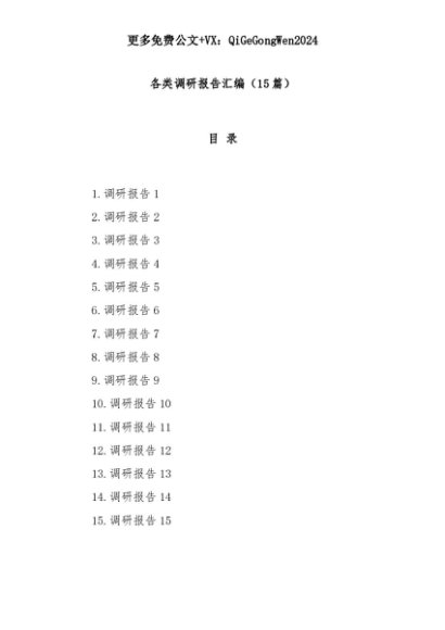 【七哥公文】2025年:(15篇)各类调研报告汇编+更多免费公文+VX:QiGeGongWen2024+更多免费公文+VX:QiGeGongWen2024