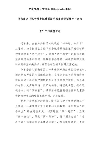 【七哥公文】2025年:贯彻落实习近平总书记重要指示批示及讲话精神“回头看”工作调度汇报+更多免费公文+VX:QiGeGongWen2024+更多免费公文+VX:QiGeGongWen2024