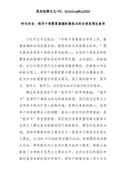 【七哥公文】2025年:研讨发言:领导干部需要掌握的最根本的本领是理论素养+更多免费公文+VX:QiGeGongWen2024+更多免费公文+VX:QiGeGongWen2024