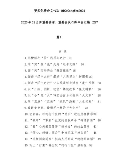 【七哥公文】2025年:(247篇)2025年02月份重要讲话、重要会议心得体会汇编+更多免费公文+VX:QiGeGongWen2024+更多免费公文+VX:QiGeGongWen2024