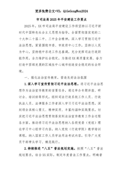 【七哥公文】2025年:市司法局2025年平安建设工作要点+更多免费公文+VX:QiGeGongWen2024+更多免费公文+VX:QiGeGongWen2024