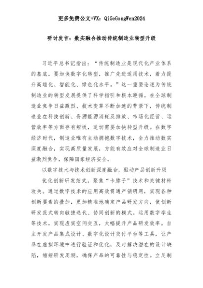 【七哥公文】2025年:研讨发言:数实融合推动传统制造业转型升级+更多免费公文+VX:QiGeGongWen2024+更多免费公文+VX:QiGeGongWen2024