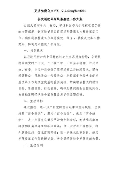 【七哥公文】2025年:县发展改革局巡察整改工作方案+更多免费公文+VX:QiGeGongWen2024+更多免费公文+VX:QiGeGongWen2024