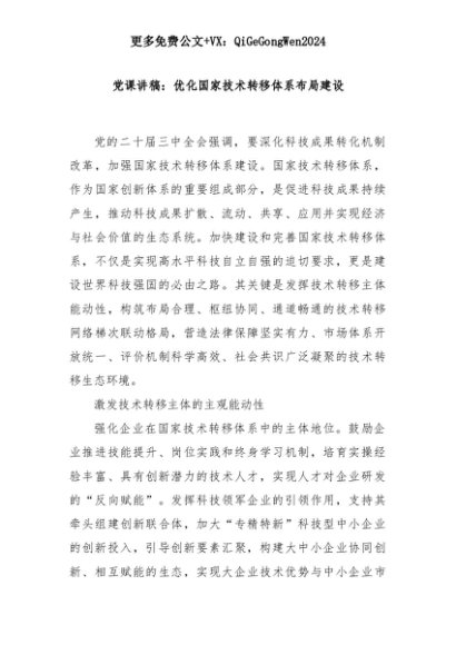 【七哥公文】2025年:党课讲稿:优化国家技术转移体系布局建设+更多免费公文+VX:QiGeGongWen2024+更多免费公文+VX:QiGeGongWen2024