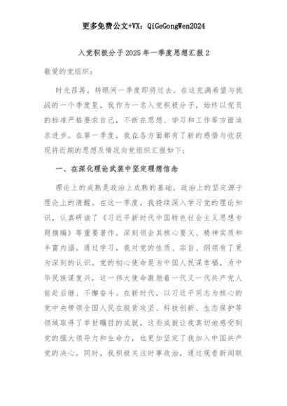 【七哥公文】2025年:入党积极分子2025年一季度思想汇报2+更多免费公文+VX:QiGeGongWen2024+更多免费公文+VX:QiGeGongWen2024