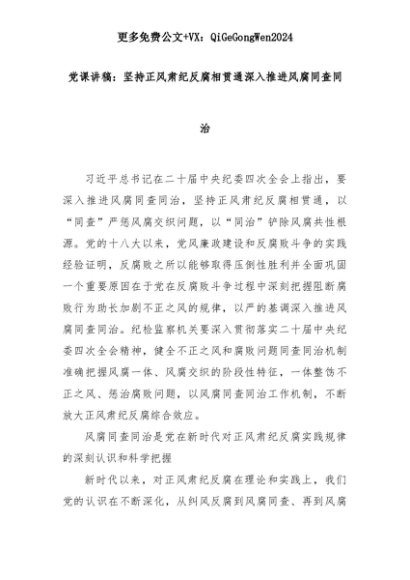 【七哥公文】2025年:党课讲稿:坚持正风肃纪反腐相贯通深入推进风腐同查同治+更多免费公文+VX:QiGeGongWen2024+更多免费公文+VX:QiGeGongWen2024