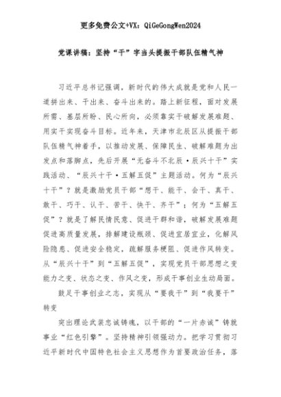【七哥公文】2025年:党课讲稿:坚持“干”字当头提振干部队伍精气神+更多免费公文+VX:QiGeGongWen2024+更多免费公文+VX:QiGeGongWen2024
