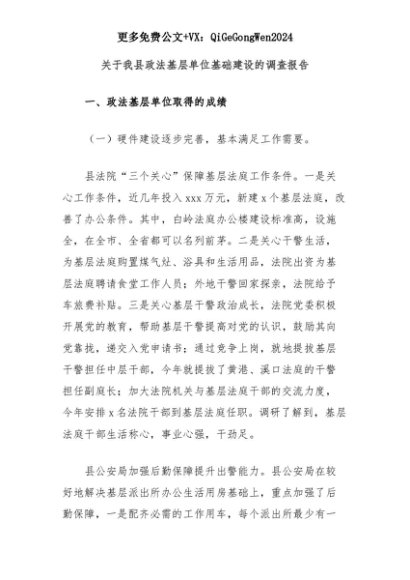 【七哥公文】2025年:关于我县政法基层单位基础建设的调查报告+更多免费公文+VX:QiGeGongWen2024+更多免费公文+VX:QiGeGongWen2024