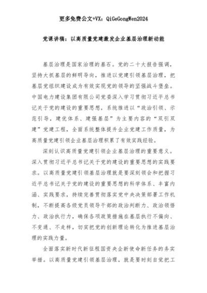 【七哥公文】2025年:党课讲稿:以高质量党建激发企业基层治理新动能+更多免费公文+VX:QiGeGongWen2024+更多免费公文+VX:QiGeGongWen2024