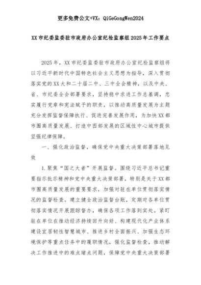 【七哥公文】2025年:XX市纪委监委驻市政府办公室纪检监察组2025年工作要点+更多免费公文+VX:QiGeGongWen2024+更多免费公文+VX:QiGeGongWen2024
