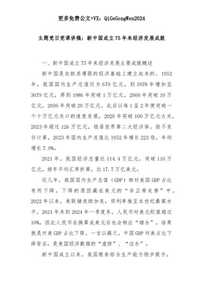 【七哥公文】2025年:主题党日党课讲稿:新中国成立75年来经济发展成就+更多免费公文+VX:QiGeGongWen2024+更多免费公文+VX:QiGeGongWen2024