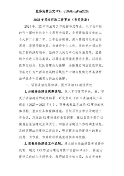 【七哥公文】2025年:2025年司法行政工作要点(市司法局)+更多免费公文+VX:QiGeGongWen2024+更多免费公文+VX:QiGeGongWen2024