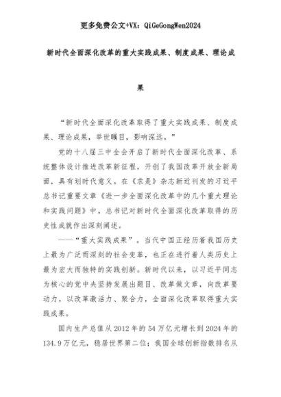 【七哥公文】2025年:新时代全面深化改革的重大实践成果、制度成果、理论成果+更多免费公文+VX:QiGeGongWen2024+更多免费公文+VX:QiGeGongWen2024