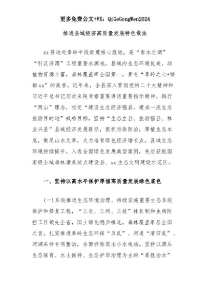 【七哥公文】2025年:推进县域经济高质量发展特色做法+更多免费公文+VX:QiGeGongWen2024+更多免费公文+VX:QiGeGongWen2024