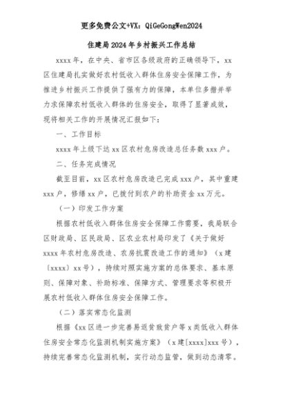 【七哥公文】2025年:住建局2024年乡村振兴工作总结+更多免费公文+VX:QiGeGongWen2024+更多免费公文+VX:QiGeGongWen2024