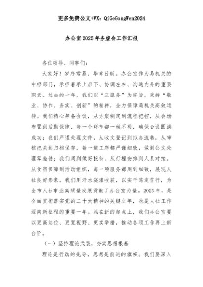 【七哥公文】2025年:办公室2025年务虚会工作汇报+更多免费公文+VX:QiGeGongWen2024+更多免费公文+VX:QiGeGongWen2024