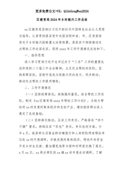 【七哥公文】2025年:区教育局2024年乡村振兴工作总结+更多免费公文+VX:QiGeGongWen2024+更多免费公文+VX:QiGeGongWen2024