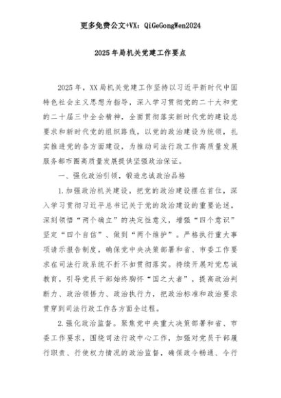 【七哥公文】2025年:2025年局机关党建工作要点+更多免费公文+VX:QiGeGongWen2024+更多免费公文+VX:QiGeGongWen2024