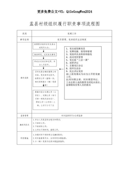 【七哥公文】2025年:xx村级组织履行职责事项流程图+更多免费公文+VX:QiGeGongWen2024+更多免费公文+VX:QiGeGongWen2024