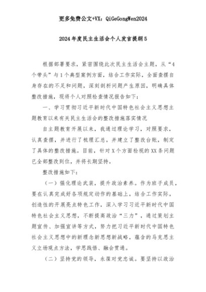 【七哥公文】2025年:2024年度民主生活会个人发言提纲5+更多免费公文+VX:QiGeGongWen2024+更多免费公文+VX:QiGeGongWen2024