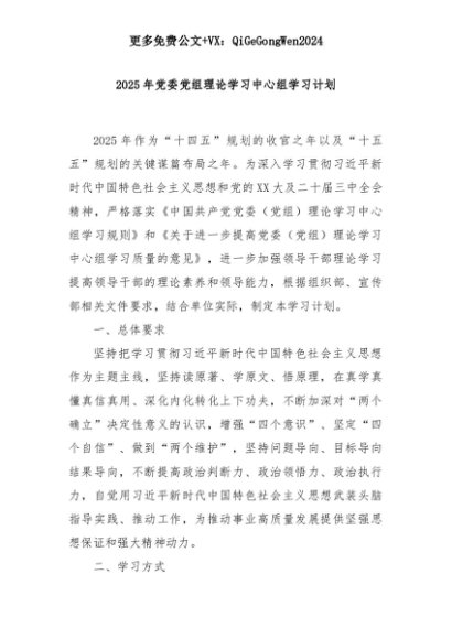 【七哥公文】2025年:2025年党委党组理论学习中心组学习计划+更多免费公文+VX:QiGeGongWen2024+更多免费公文+VX:QiGeGongWen2024