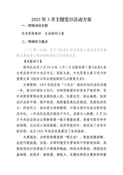 【七哥公文】2025年:2025年3月主题党日活动方案+更多免费公文+VX:QiGeGongWen2024+更多免费公文+VX:QiGeGongWen2024