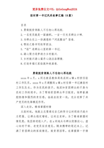 【七哥公文】2025年:(8篇)驻村第一书记风采故事汇编+更多免费公文+VX:QiGeGongWen2024+更多免费公文+VX:QiGeGongWen2024