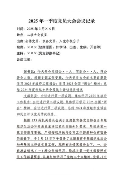 【七哥公文】2025年:07-2025年一季度党员大会会议记录(3月版)+更多免费公文+VX:QiGeGongWen2024+更多免费公文+VX:QiGeGongWen2024