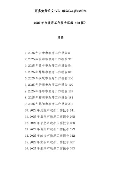 【七哥公文】2025年:(68篇)2025年市政府工作报告汇编+更多免费公文+VX:QiGeGongWen2024+更多免费公文+VX:QiGeGongWen2024
