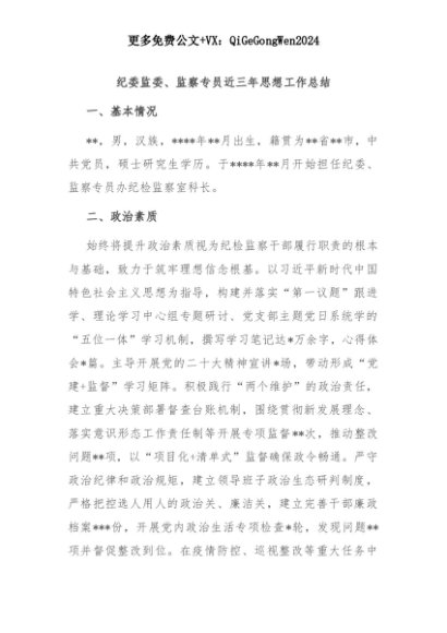 【七哥公文】2025年:纪委监委、监察专员近三年思想工作总结+更多免费公文+VX:QiGeGongWen2024+更多免费公文+VX:QiGeGongWen2024