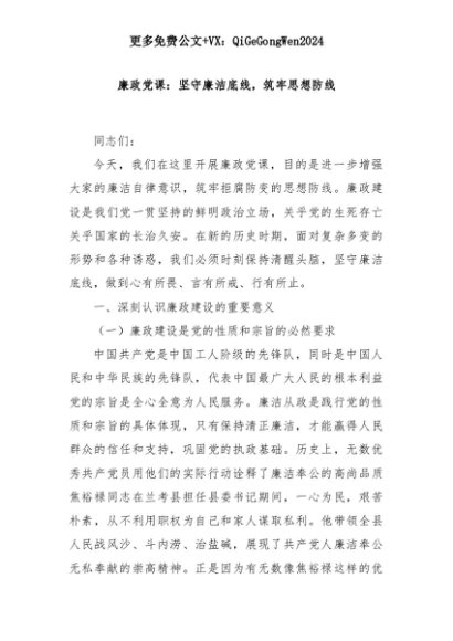 【七哥公文】2025年:廉政党课:坚守廉洁底线,筑牢思想防线+更多免费公文+VX:QiGeGongWen2024+更多免费公文+VX:QiGeGongWen2024