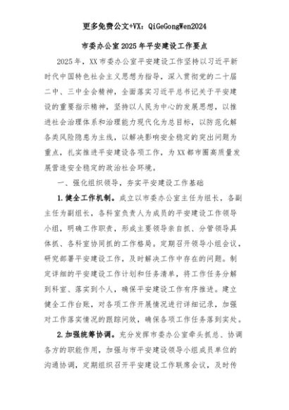 【七哥公文】2025年:市委办公室2025年平安建设工作要点+更多免费公文+VX:QiGeGongWen2024+更多免费公文+VX:QiGeGongWen2024