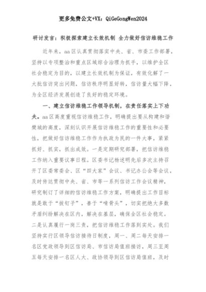 【七哥公文】2025年:研讨发言:积极探索建立长效机制 全力做好信访维稳工作+更多免费公文+VX:QiGeGongWen2024+更多免费公文+VX:QiGeGongWen2024