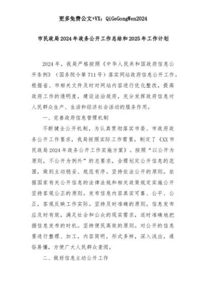 【七哥公文】2025年:市民政局2024年政务公开工作总结和2025年工作计划+更多免费公文+VX:QiGeGongWen2024+更多免费公文+VX:QiGeGongWen2024