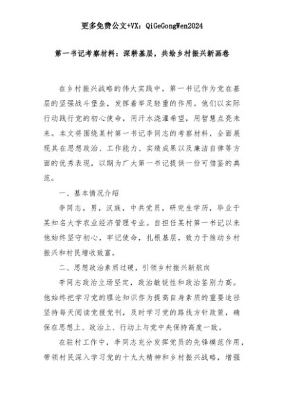 【七哥公文】2025年:第一书记考察材料:深耕基层,共绘乡村振兴新画卷+更多免费公文+VX:QiGeGongWen2024+更多免费公文+VX:QiGeGongWen2024