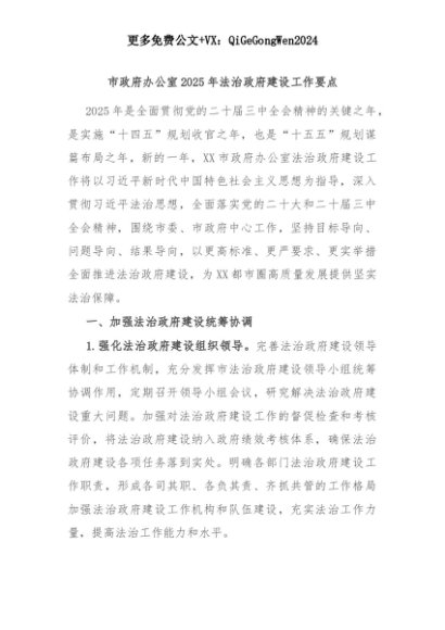 【七哥公文】2025年:市政府办公室2025年法治政府建设工作要点+更多免费公文+VX:QiGeGongWen2024+更多免费公文+VX:QiGeGongWen2024