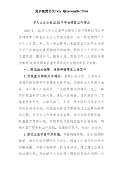 【七哥公文】2025年:市人大办公室2025年平安建设工作要点+更多免费公文+VX:QiGeGongWen2024+更多免费公文+VX:QiGeGongWen2024