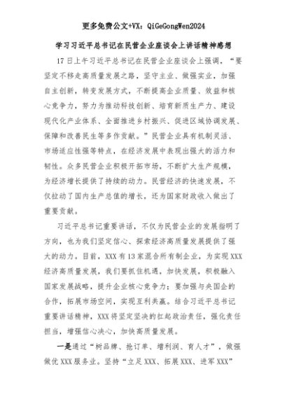 【七哥公文】2025年:学习习近平总书记在民营企业座谈会上讲话精神感想+更多免费公文+VX:QiGeGongWen2024+更多免费公文+VX:QiGeGongWen2024