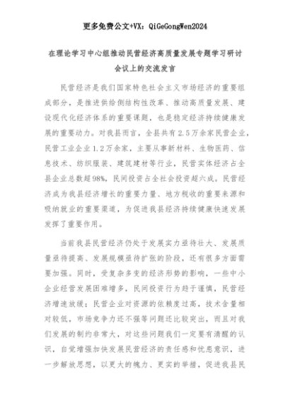【七哥公文】2025年:在理论学习中心组推动民营经济高质量发展专题学习研讨会议上的交流发言+更多免费公文+VX:QiGeGongWen2024+更多免费公文+VX:QiGeGongWen2024