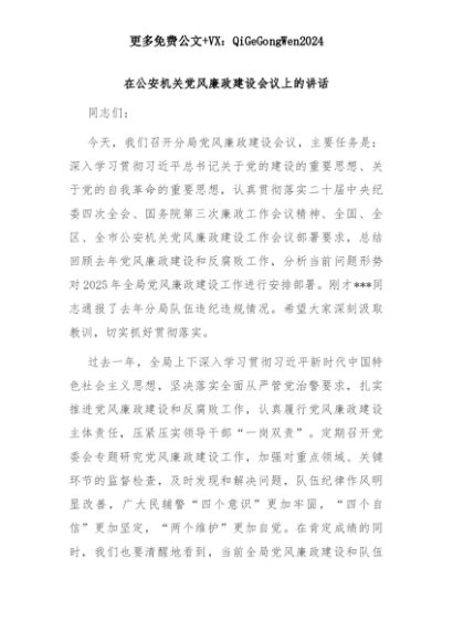 【七哥公文】2025年:在公安机关党风廉政建设会议上的讲话+更多免费公文+VX:QiGeGongWen2024+更多免费公文+VX:QiGeGongWen2024