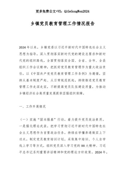 【七哥公文】2025年:乡镇党员教育管理工作情况报告+更多免费公文+VX:QiGeGongWen2024+更多免费公文+VX:QiGeGongWen2024
