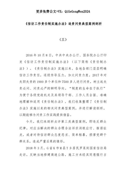 【七哥公文】2025年:《信访工作责任制实施办法》追责问责典型案例剖析(三)+更多免费公文+VX:QiGeGongWen2024+更多免费公文+VX:QiGeGongWen2024