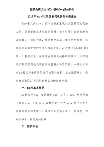 【七哥公文】2025年:2025年xx村以案促教促改促治专题报告+更多免费公文+VX:QiGeGongWen2024+更多免费公文+VX:QiGeGongWen2024