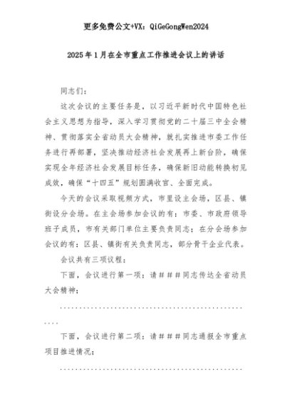 【七哥公文】2025年:2025年1月在全市重点工作推进会议上的讲话+更多免费公文+VX:QiGeGongWen2024+更多免费公文+VX:QiGeGongWen2024