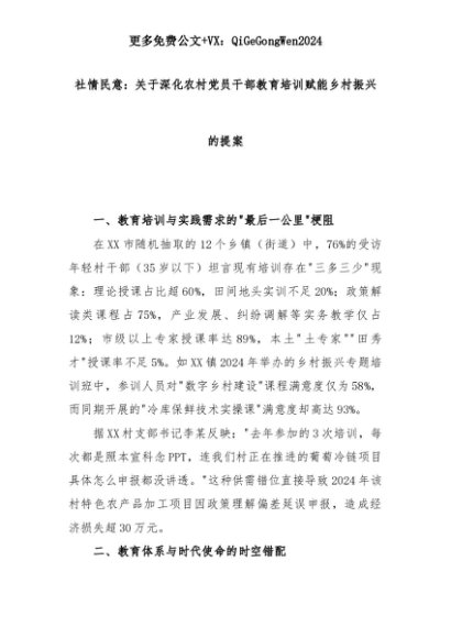 【七哥公文】2025年:2025年社情民意:关于深化农村党员干部教育培训赋能乡村振兴的提案+更多免费公文+VX:QiGeGongWen2024+更多免费公文+VX:QiGeGongWen2024