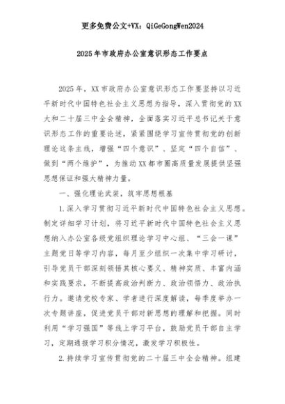 【七哥公文】2025年:2025年市政府办公室意识形态工作要点+更多免费公文+VX:QiGeGongWen2024+更多免费公文+VX:QiGeGongWen2024