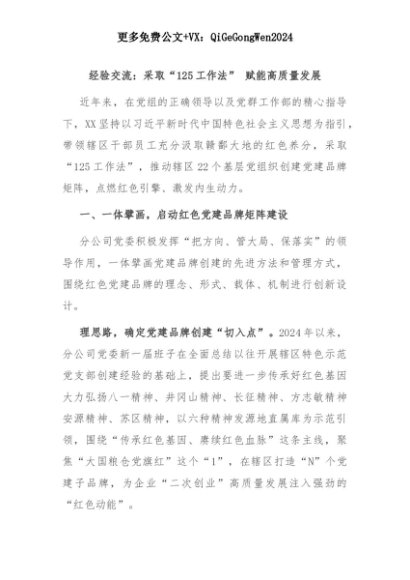 【七哥公文】2025年:经验交流:采取“125工作法” 赋能高质量发展+更多免费公文+VX:QiGeGongWen2024+更多免费公文+VX:QiGeGongWen2024