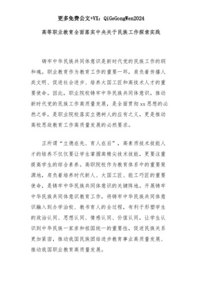 【七哥公文】2025年:高等职业教育全面落实中央关于民族工作探索实践+更多免费公文+VX:QiGeGongWen2024+更多免费公文+VX:QiGeGongWen2024