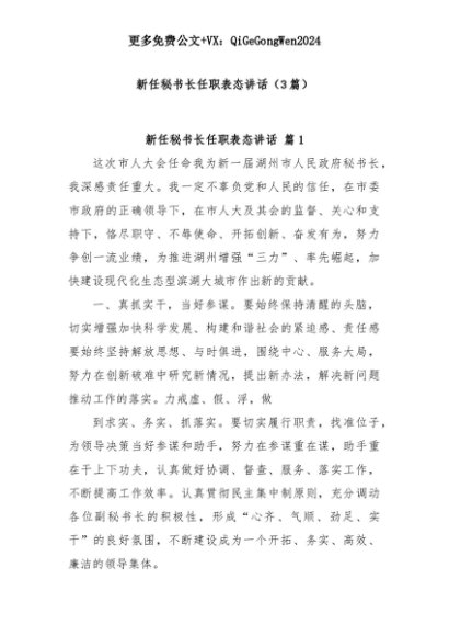 【七哥公文】2025年:(3篇)新任秘书长任职表态讲话+更多免费公文+VX:QiGeGongWen2024+更多免费公文+VX:QiGeGongWen2024