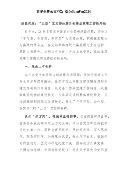 【七哥公文】2025年:经验交流:“三型”党支部品牌开创基层党建工作新路径+更多免费公文+VX:QiGeGongWen2024+更多免费公文+VX:QiGeGongWen2024